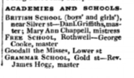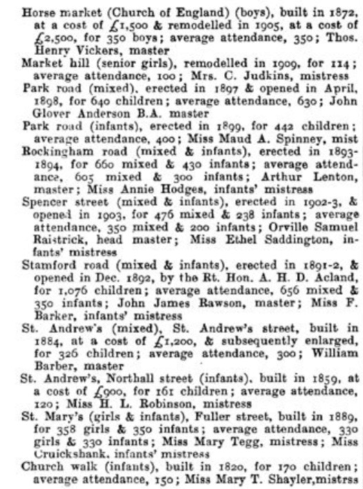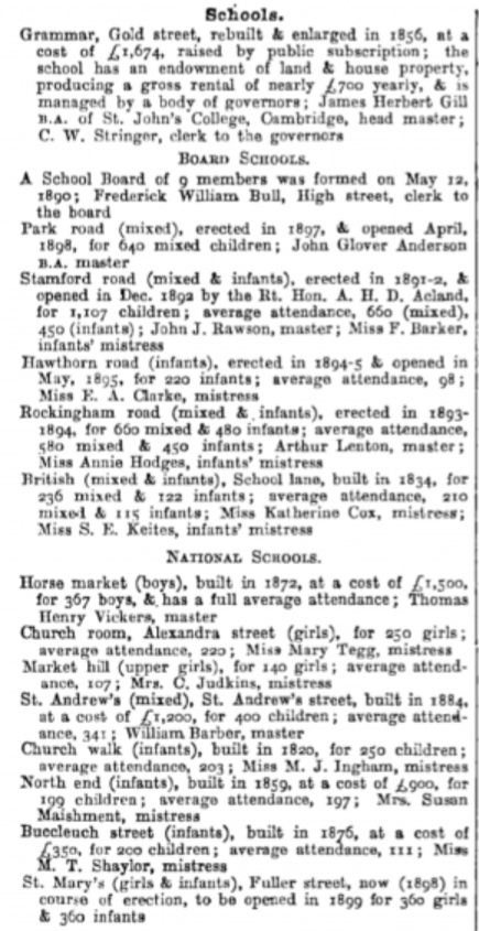 Endowed schools (like Kettering Grammar School, founded 1577) taught Latin and later broader subjects, usually for boys 11+.