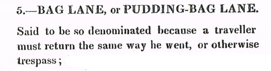 There are other Pudding Bag Lanes across England, all presumably named from similar reasons.