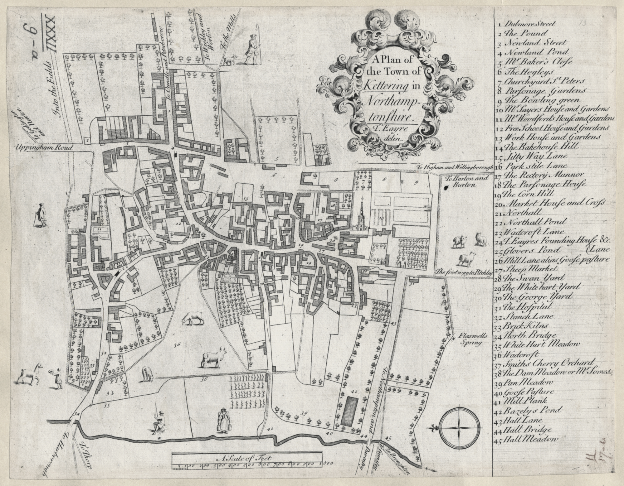 Map of Kettering – 1721 This map was drawn by Thomas Eayre for Sir John Bridges of Barton Hall. This was part of Sir John‘s collection of various documents and artefacts relating to the county’s history. Click to enlarge Click to enlarge