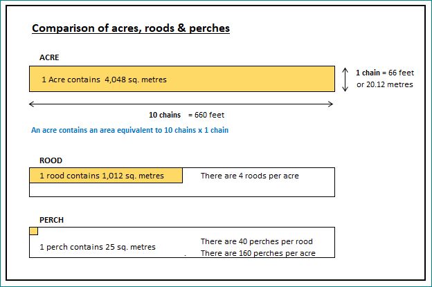 p = perches (1 perch = 16.5 feet × 16.5 feet = 30.25 square yards)